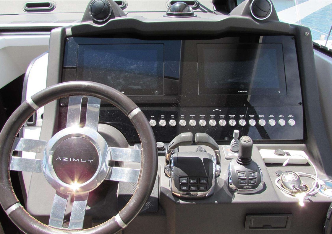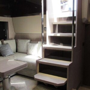 Aria condizionata (60.000 BTU), BBQ/ Grill pozzetto, Bimini (a prua e poppa), Boiler, Cassaforte Collegamento internet, Cuscineria completa, Dimmer per Luci, Forno combinato, Frigorifero esterno, Frigorifero interno, Home Theater, Impianto TV, Lavasciuga, Lavastoviglie, Meccanismo saliscendi per TV, Piastra in vetroceramica (Miele), Prese interne 12/220v, Radio AM/FM (Fusion ), Stereo, Telecamera (Garmin GC 200), Teli copri finestra (neri), Telo coprisedile, Tendalino, 2 TV, Ancora (Anchor Ultra Marine 35kg), Antenna radar, Auto Dynamic Trim Interceptor (Volvo Penta), Caricabatterie, Comando motori elettronico, Doccia esterna, Elica di prua 6.5 Kw, Faro orientabile (elettrico), Garage per tender (con winch elettrico), Hard top, Lavaggio catena, Lavandino nel Pozzetto, Log, Luci di cortesia, 2 Luci subacquee, Moto d’acqua (Sea-Doo 900 ace – 90), Passerella (Opacmare), Piattaforma (Elettroidraulica), Pozzetto Teak, Presa 220V e presa acqua banchina, Salpa Ancore Elettrico, Scaletta da bagno, Sedile Copilota, Tavolo pozzetto (Carbon fiber), Tavolo Salone Abbattibile, Tromba, 2 Winch tonneggio di poppa, AIS (Garmin 800), Bussola, Contametri catena, Contamiglia, DSC vhf, Ecoscandaglio, GPS, Joystick (Volvo Penta), Pilota automatico (Garmin), Plotter con antenna GPS (Garmin doppio display), Radar, Radio VHF, generatore Kohler 13,5 kw, leasing in corso.