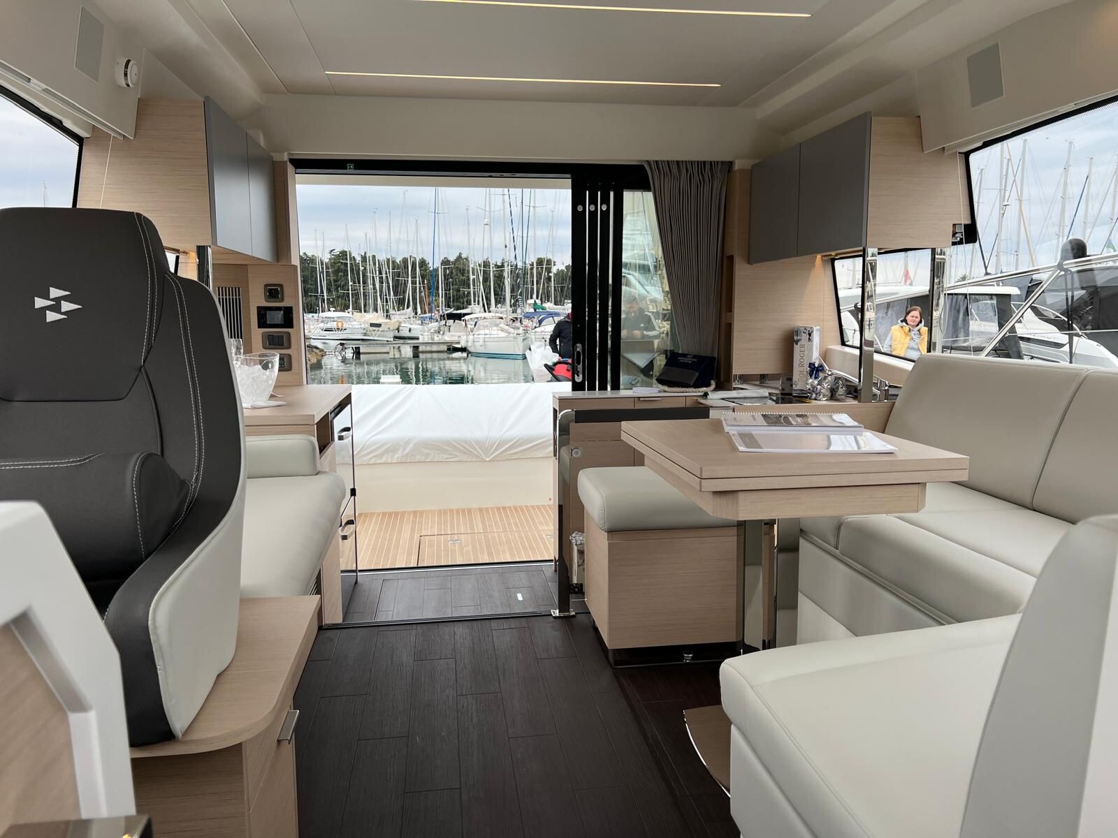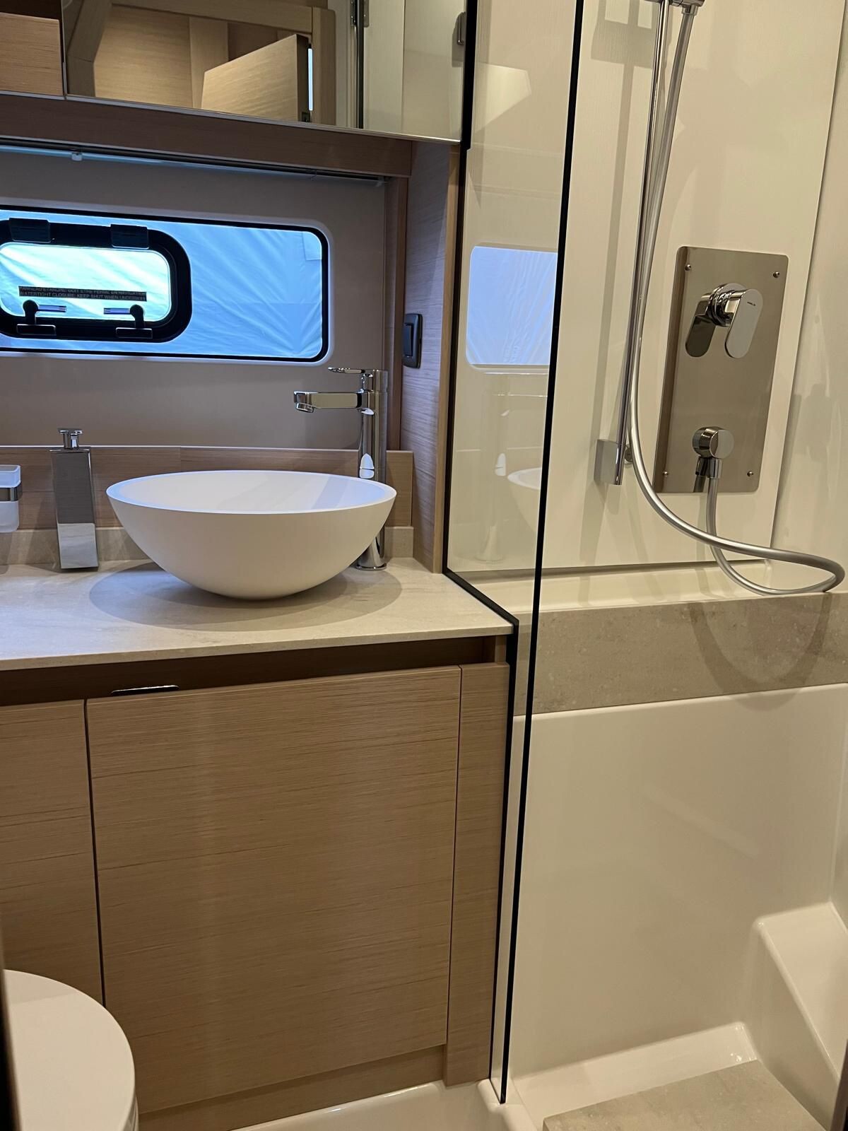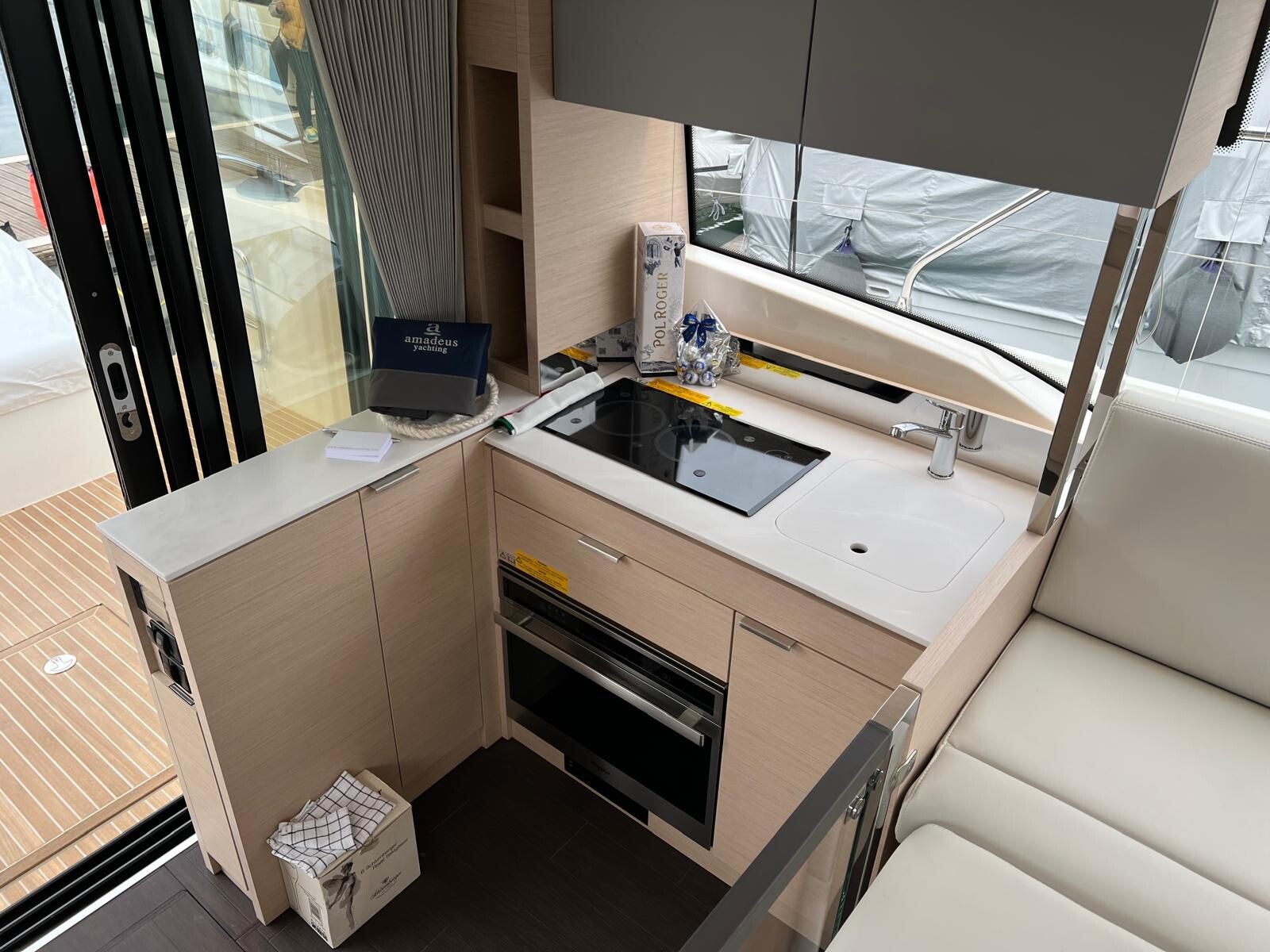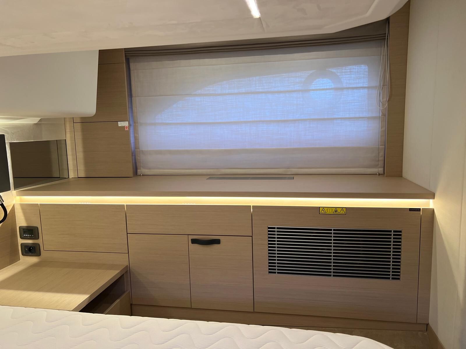 Comando Joystick Wireless DOCKMATE Twist – nuovo, Elica di prua 140 kgf, generatore 8,5 kw, con insonorizzazione, aria condizionata, passerella idraulica, trim flap elettrici, interni rovere bianco, pavmento in parquet Wengé spazzolato per ingresso e salone, Moquette in 2 cabine, frigorifero in acciaio inox con 2 cassetti, batteria extra 115A, panca pozzetto, bitte aggiuntive in acciaio inox sullo specchio di poppa, comandi verricello e contacatena alla timoneria, pozzetto e plancetta in teak, finestra apribile a dritta, piano cottura in vtrc, microonde/grill, sistema di lavaggio elettrico del ponte in pozzetto e gavone dell’ancora con pompa separata, presa acqua da banchina, vhf, pilota automatico – Interfaccia Cummins, plotter 12″, audio BOWERS & WILKINS, zanzariere, etc. PARI AL NUOVO