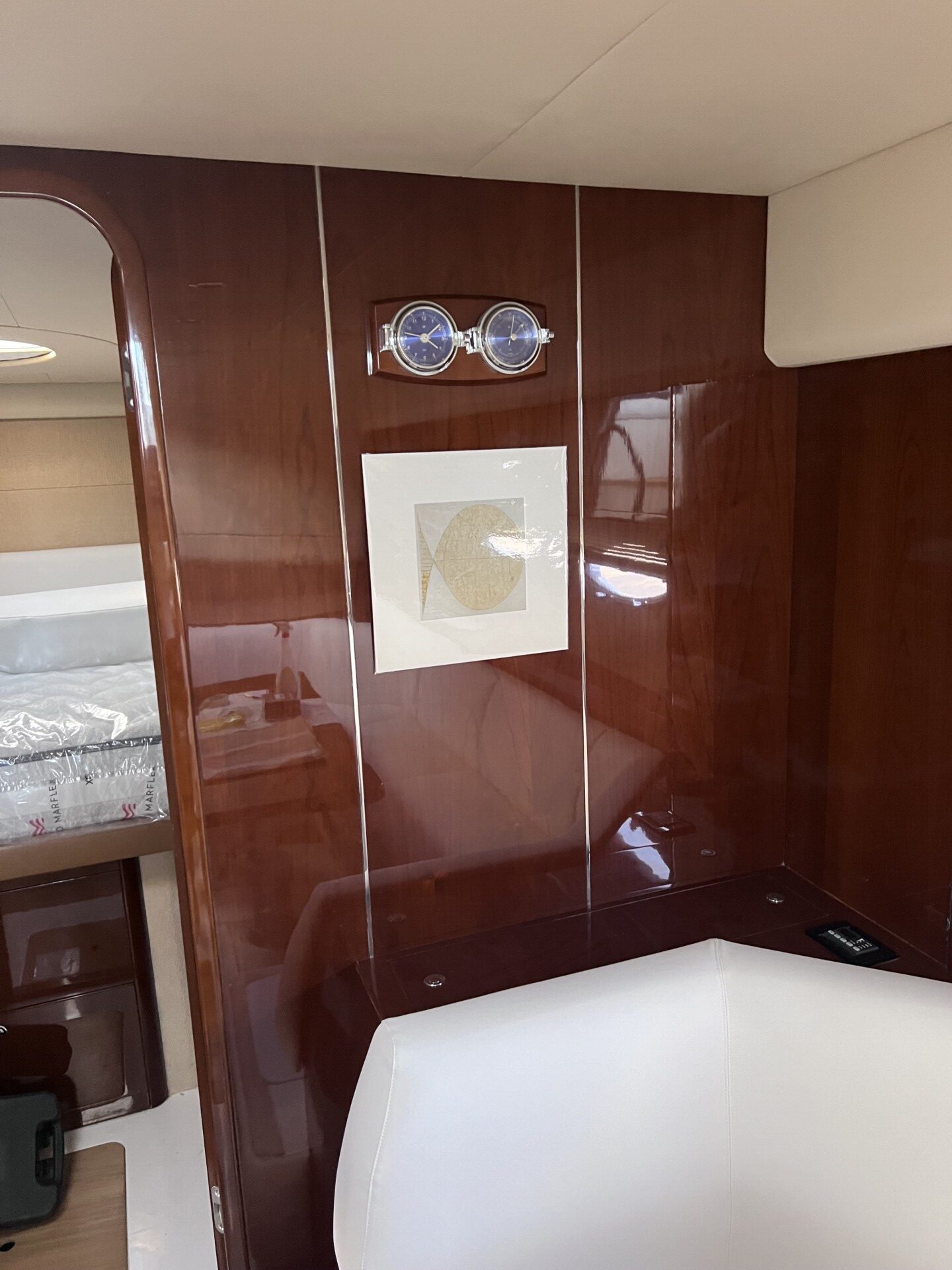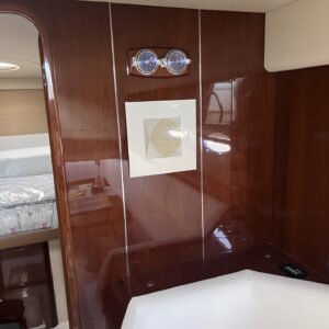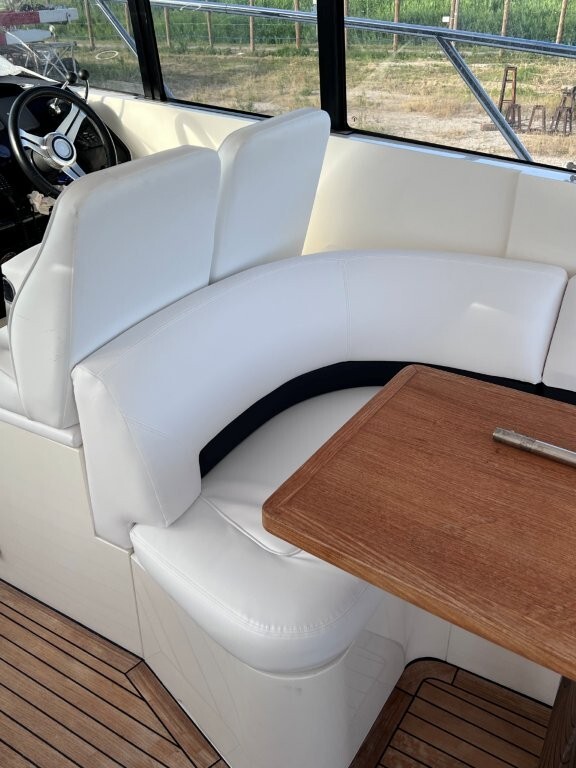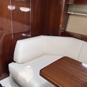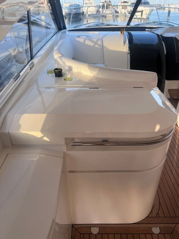 elica di prua e di poppa, aria condizionata, ht ,ecoscandaglio, gps-plotter, pilota automatico, bussola, contamiglia, faro orientabile, trimm, flpas, microcommandi, passerella idraulica, tavolo pozzetto, riscaldamento, acqua calda, frigo pozzetto, forno, frigo/freezer, piano cottura in vetroceramica, icemaker, microonde, 2x wc elettrici, radio, antenna sat, tv, copri-finestre, tendalino, copripozzetto, hangar, fiancate blu, molto ben tenuta