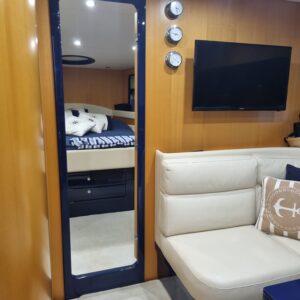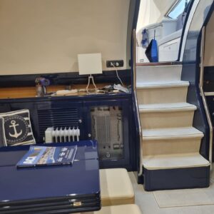 GPS Raymarine 12’ touchscreen 2021, pilota automatico, stazione meteo, bussola, strumentazioni motori completa, frigorifero con congelatore, piano cottura, zona prendisole a prua e poppa con cuscineria , plancetta, impianto 24-220 V, aria condizionata , generatore Mase 7.5 kw, serbatoio acque nere, boiler , autoclave, caricabatterie , presa banchina, timoneria idraulica, pompe di sentina elettriche/manuali, impianto antincendio, battagliola alta, elica di prua, flaps, luci pozzetto, passerella e scaletta bagno elettroidraulica, teak pozzetto + plancetta, tendalini vari , bimini top, radio Fusion 2021, tv lcd, cassaforte, doccetta prua e poppa.