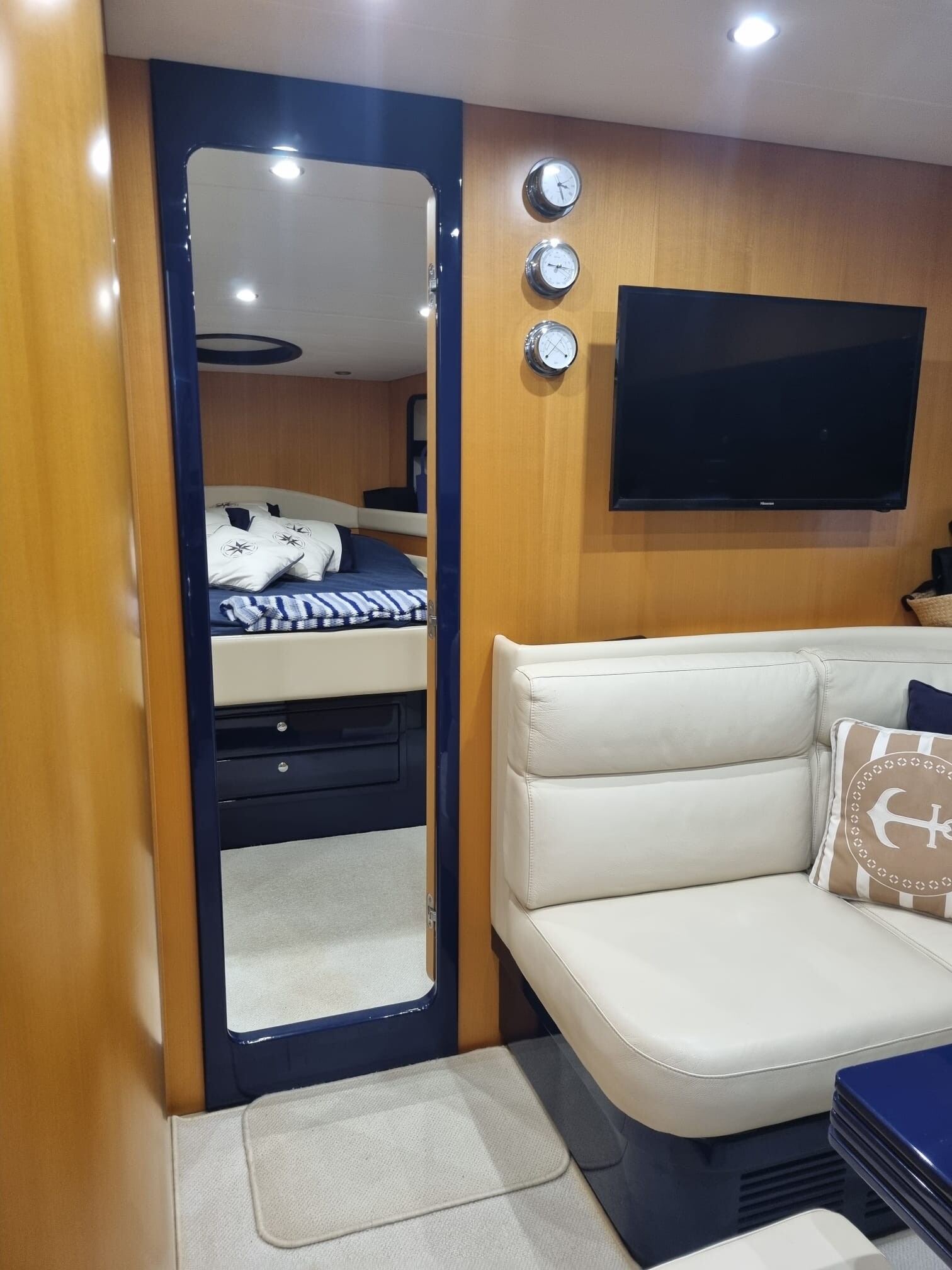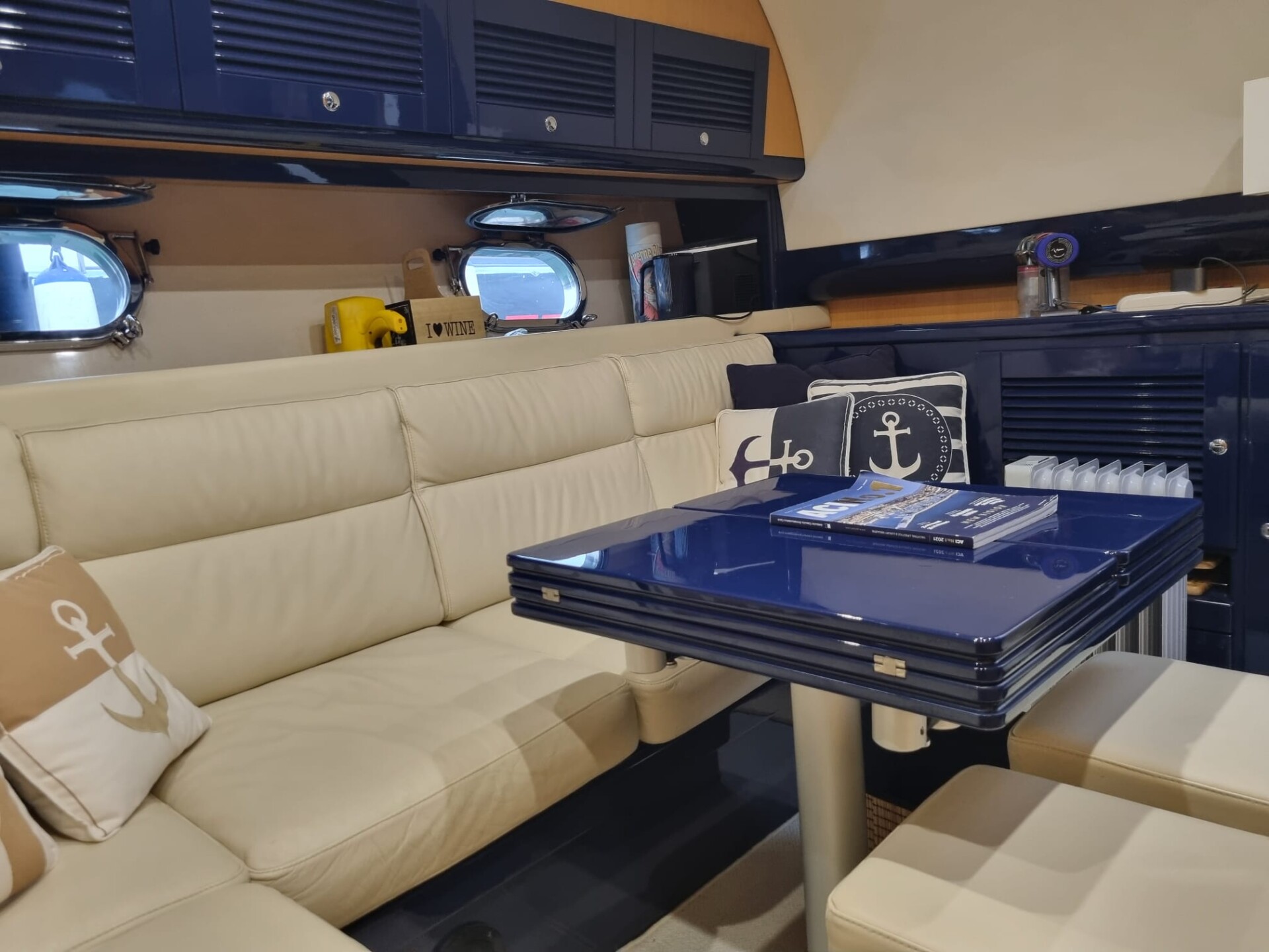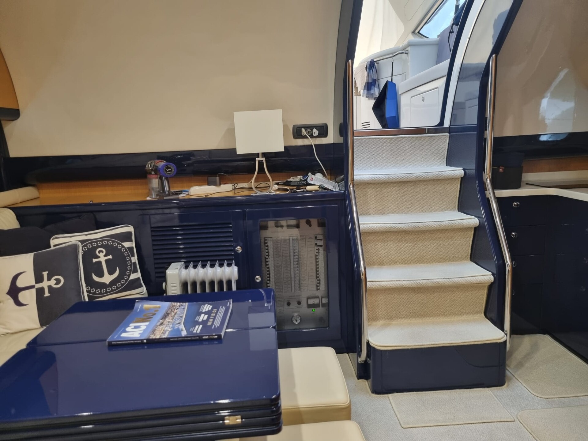 GPS Raymarine 12’ touchscreen 2021, pilota automatico, stazione meteo, bussola, strumentazioni motori completa, frigorifero con congelatore, piano cottura, zona prendisole a prua e poppa con cuscineria , plancetta, impianto 24-220 V, aria condizionata , generatore Mase 7.5 kw, serbatoio acque nere, boiler , autoclave, caricabatterie , presa banchina, timoneria idraulica, pompe di sentina elettriche/manuali, impianto antincendio, battagliola alta, elica di prua, flaps, luci pozzetto, passerella e scaletta bagno elettroidraulica, teak pozzetto + plancetta, tendalini vari , bimini top, radio Fusion 2021, tv lcd, cassaforte, doccetta prua e poppa.